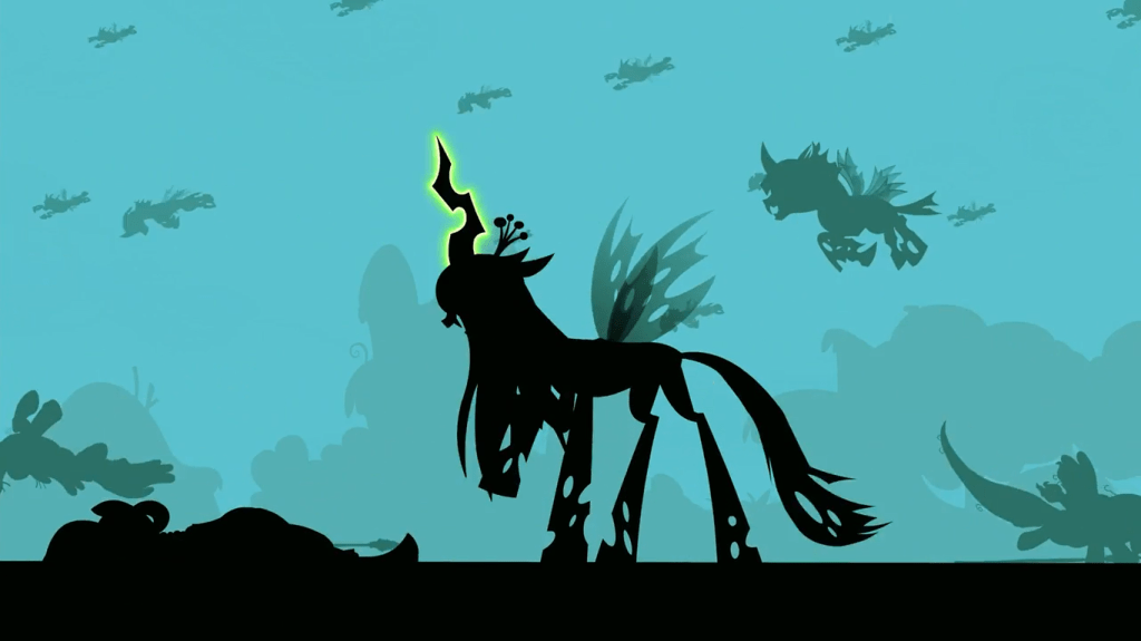It’s always going to be a contentious when a villain’s actions are explained with a tragic backstory. However, if you’ve been reading all these posts in order, you already know I am a staunch defendant of Starlight Glimmer’s character. I think backstory will make any villain more interesting, and that includes giving Starlight Glimmer a childhood friend who’s a fun character in his own right. It’s no accident I haven’t had much to say about Queen Chrysalis or King Sombra as characters—these two don’t really have their pasts explained, at least not in the show itself. Cozy Glow, who controversially lacks even the slightest backstory, will similarly be a predicament to analyze. In contrast, I’ve said plenty about Nightmare Moon due to her and Celestia’s backstory, and Tirek also has an interesting backstory to give him some depth. Discord is an odd case, because his persistent defiance of logic means it makes sense for him not to have much of a backstory.