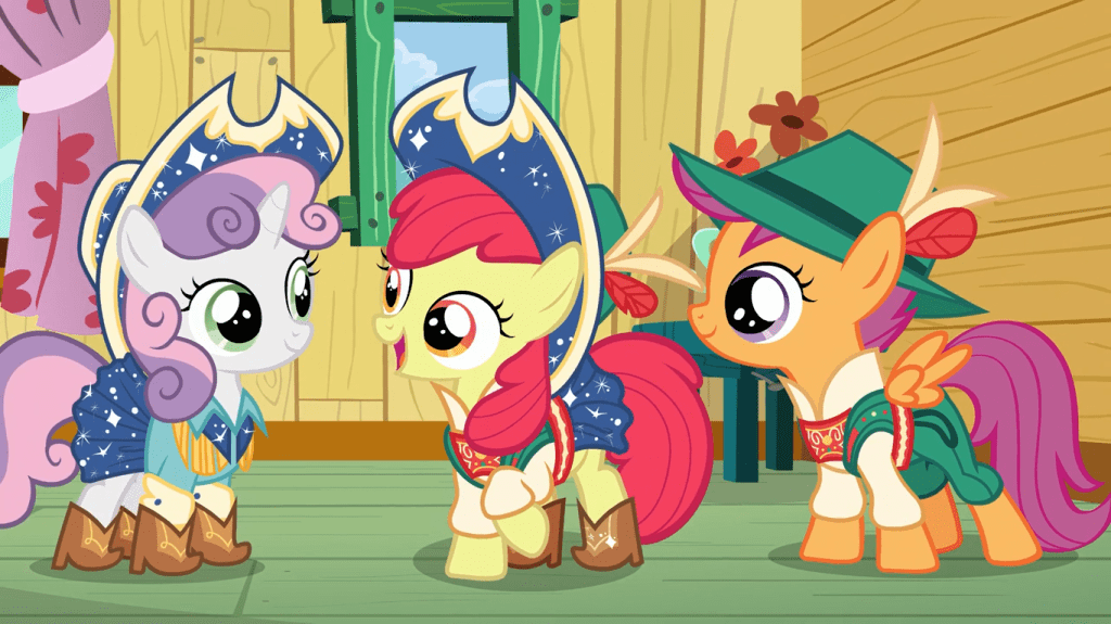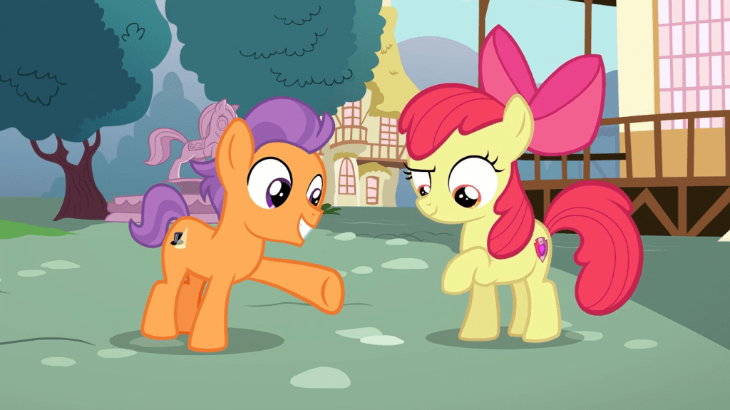Premise: Now that they’ve earned their cutie marks, what are the Cutie Mark Crusaders going to do each day? Scootaloo and Sweetie Belle have some good ideas, but Apple Bloom feels a void she hasn’t experienced since founding the group.