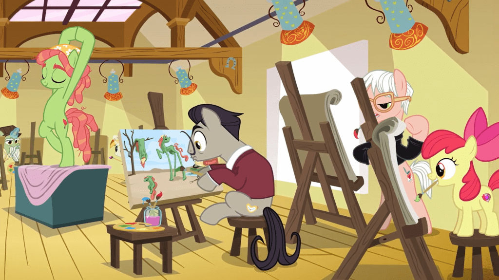 As a master of soothing relaxation, it’s no wonder Tree Hugger is good as a model for artist ponies.