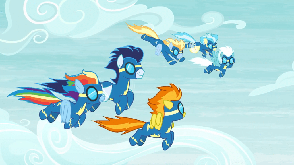 * From this episode onwards, you can usually assume this word is shorthand for “the Wonderbolts minus Rainbow Dash”.