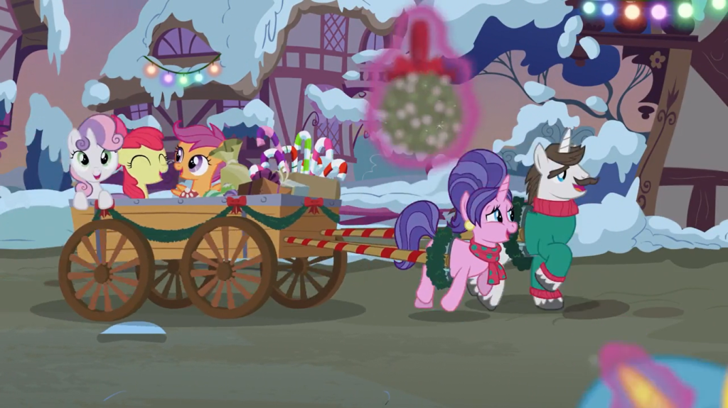 I’ve always thought this episode was weirdly disconnected from the rest of the series’ story, and after reviewing it in depth, I think I still feel the same. This prevents the episode from sticking out too much to me, because I’ve always found the real highlights of the show to be the episodes that massively (or at least moderately) influence its story. That’s a problem that holiday specials in TV shows sometimes run into: they’re so disconnected from the rest of the show that I forget them entirely. Hearth’s Warming Eve and Hearthbreakers nicely avoided this by being about more than just holidays, going into detail about Equestrian history and Pinkie Pie’s family respectively. But this one plays the “characters tell a Christmas story” episode style as straight as can be.