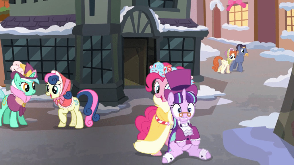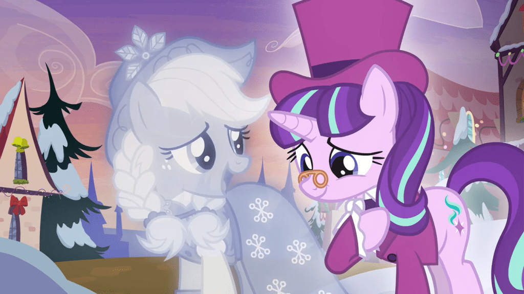 Premise: Since Starlight Glimmer isn’t totally feeling up to the Hearth’s Warming Eve spirit, Twilight Sparkle tells the story of Snowfall Frost—a historical figure who wanted to end the holiday with many parallels to Starlight’s old self.