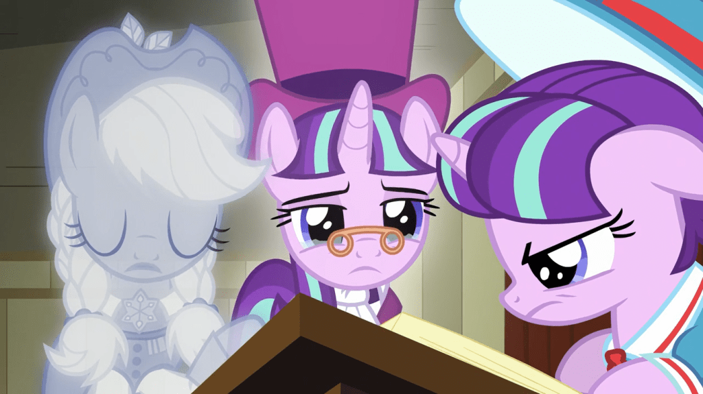 While Spike raises an excellent point about Starlight’s hypocrisy, I can see why she’d be confused at the events of this story. Often, you won’t understand how insane and ridiculous something you’re doing is until you see someone else doing something similar, and then it’ll all click.