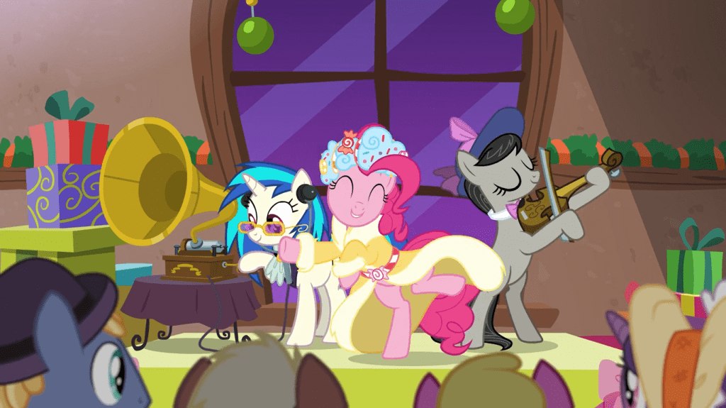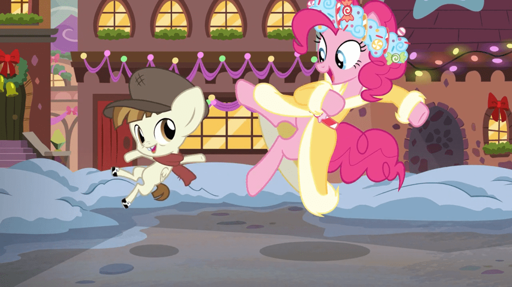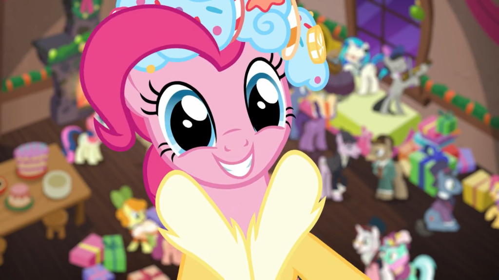 The fourth song of the episode is called Pinkie’s Present, and it is glorious. It’s bouncy and fun and jazzy and Christmas-y all at once, and it would be right at home in a classic 90’s animated movie. The title of the song has a dual meaning: it’s both about the joy of giving presents, and looking around you to appreciate the present. I love that the musical numbers get more and more varied in style as this show progresses.