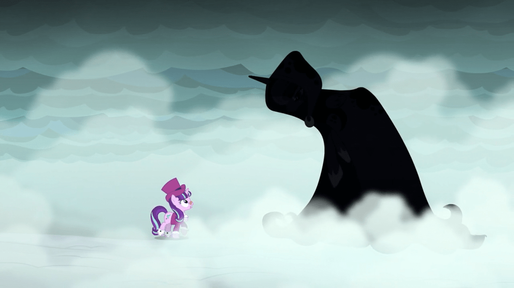 While Starlight Glimmer’s descent into villainy was caused by losing her best friend to a cutie mark, Snowfall Frost’s instead originated from desire to please her authority figure. And yet, there still are parallels. Both Starlight Glimmer and Snowfall Frost felt that everything they thought they knew was a lie—Starlight about friendship, Snowfall about a holiday powered by friendship.