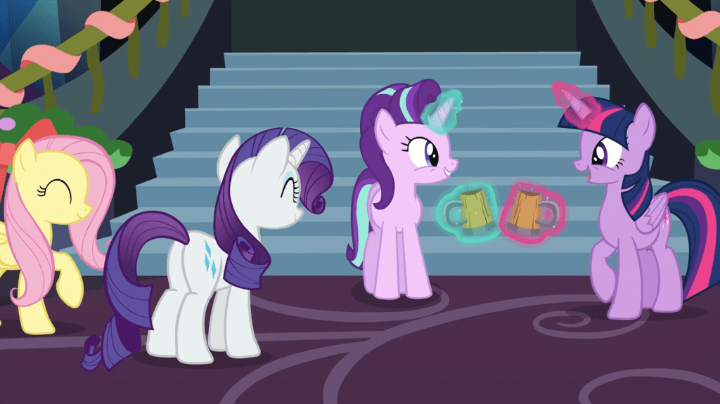 And what do you know, there’s one more musical number left! This time, it’s a reprise of the first song, with an intro sung by Starlight Glimmer, and the rest in alternation between her and a choir. Starlight took a clear message from this story, and she doesn’t need to say what message she learned, because showing it is much more effective.