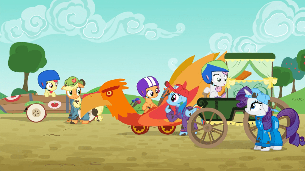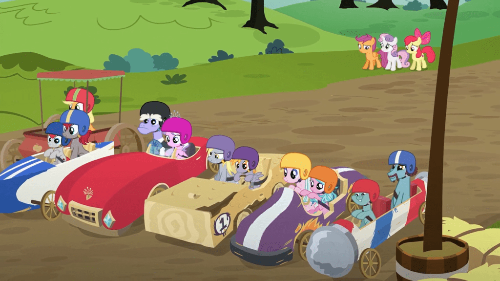 Premise: The Cutie Mark Crusaders participate in a derby competition where they have to build their own carts. They each get help from their big sisters, who all take over the project and make it theirs.