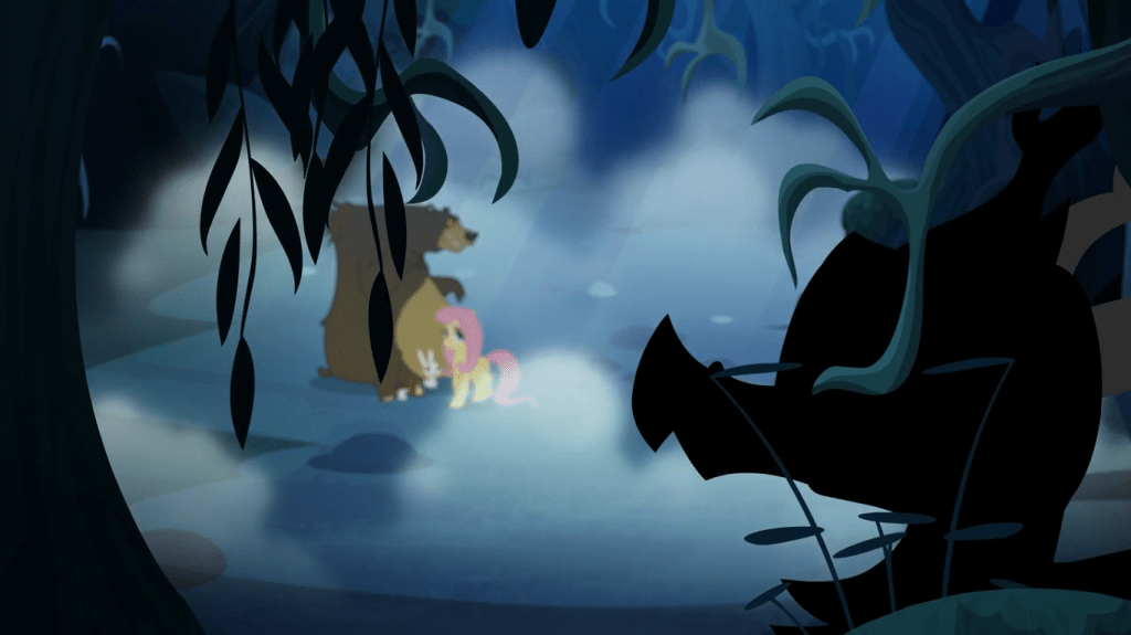 The very beginning of this episode is already painful to watch. Rainbow Dash scares Fluttershy with a shadow monster disguise, then laughs at her childhood best friend for being freaked out and driven to tears, which is more painful to watch than all but the very worst moments of the worst Rainbow Dash and Spike episodes. This episode could have started with a prank on some supporting character like Big Macintosh or Mayor Mare or Lyra Heartstrings so that it doesn’t start with complete pain, but no, it had to start with a prank on the cutesy shy girl who fans love so much. Way back in Griffon the Brush Off, Rainbow Dash agreed to draw the line with pranks on Fluttershy, but here she has completely forgotten that, and for what purpose? For me to suffer, that’s why.