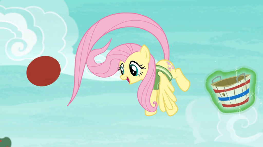 Fluttershy doesn’t realize it, but she and Pinkie Pie were in the zone when they first practiced buckball. They just have a different method of getting into the zone from the other two, which is focusing on the fun and excitement. That’s probably my one criticism with this episode: it doesn’t quite understand what being in the zone means.
