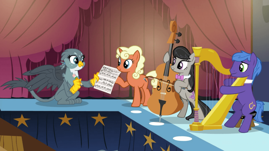 Gabby can fly and has lion-like strength, but she has one absolutely amazing power that not even the mightiest alicorns have. It’s called “hands”. She can do things as varied as play sports and quickly write music partly because of her hands, and partly because she’s the type of character who is good at tons of things but still has a craving desire for more. This is something that many bronies can empathize with, especially those that create tons of fan content.