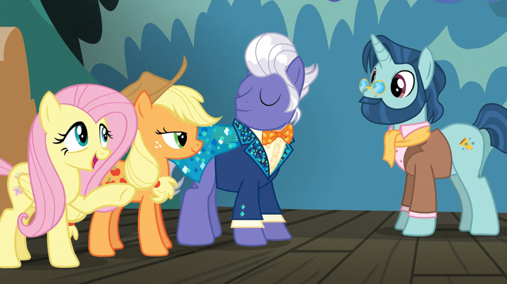 Fluttershy greeting others in her soft, breathy voice will never not be adorable. That is one of two reasons I’m pointing out this passage—the other reason is because I don’t have much to say about this stretch of the episode, where Gladmane introduces us to a bunch of performing artists.