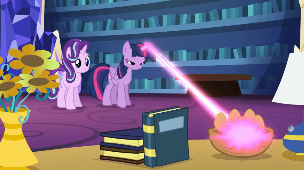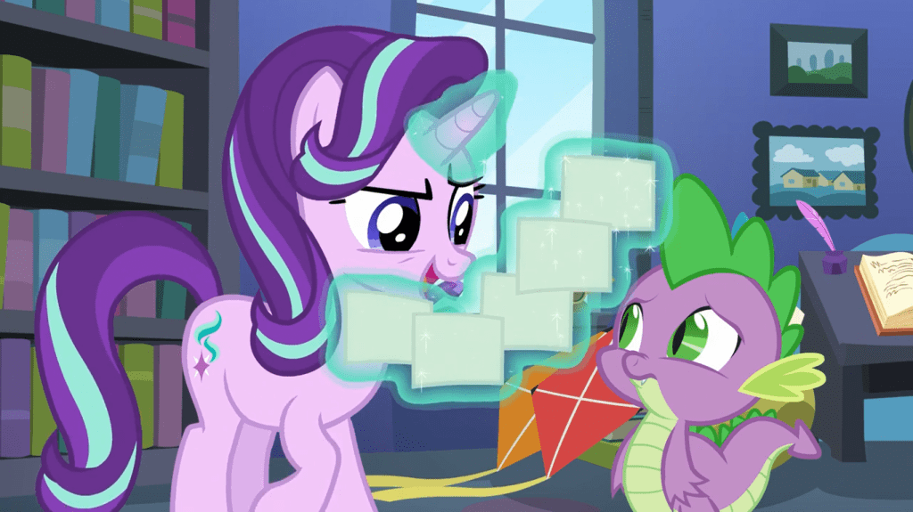 This scene teaches something valuable to viewers: the importance of consent. This is not an easy topic to convey in a kid-friendly way, and the episode has a clever solution: Starlight does something non-consensual that has no real-world equivalent. That way, it remains acceptable on a kids’ show, but it still tells viewers what consent is. It smoothly ties into an apology and friendship lesson.
