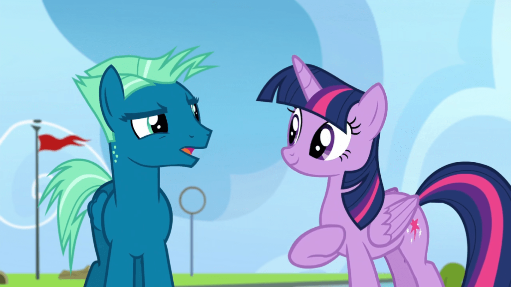 Twilight Sparkle: And Vapor’s so busy making her friend look good, she’s not focused on her own flying at all.