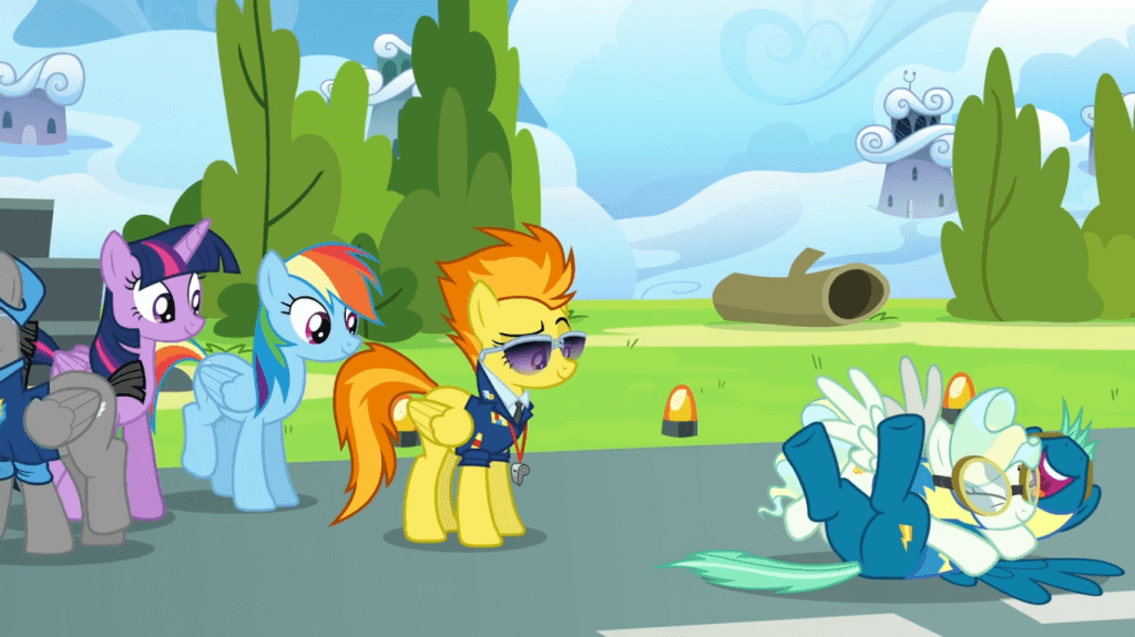 These little asides make Spitfire a much more interesting character than she ever was before. While she truly is a no-nonsense leader, she plays up her brashness when the Wonderbolts are involved. I love when episodes give new sides to supporting characters that aren’t their main focus.