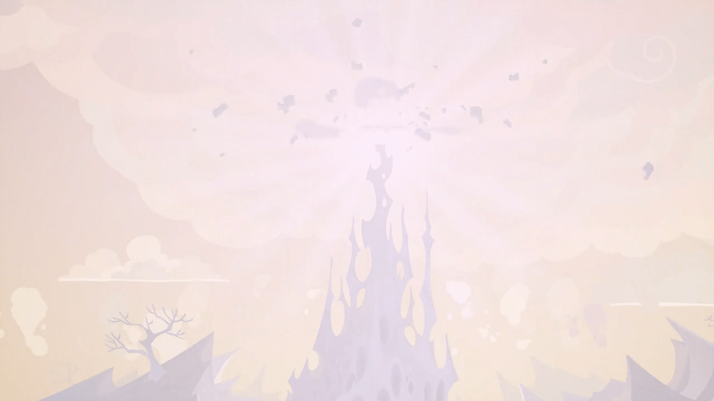 Inspired by Thorax’s metamorphosis, all the other changelings generate a huge explosion, leading to the divisive part of the episode: the new design of changelings. As I discussed when Thorax transformed, I think this redesign was done largely out of necessity, because most changelings had previously looked identical. But there are some viewers who preferred the dark look of changelings, which some describe as “ugly cute” or an indication that dark isn’t necessarily evil. I got used to this new look very quickly, because it’s meant to symbolize that this season doesn’t end with one villain’s redemption arc, but with an entire species’ redemption arc. That’s an awesome surprise to end the middle seasons’ pattern of redemption arcs.