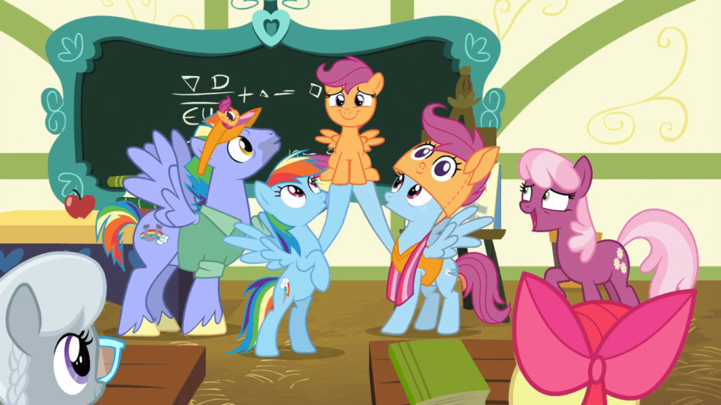 Premise: While doing a school report on a pony she admires, Scootaloo encounters Rainbow Dash’s parents who discover their daughter is a Wonderbolt. They cheer Rainbow Dash on for this feat so loudly it starts getting on her nerves. But could they be in the right for doing so?