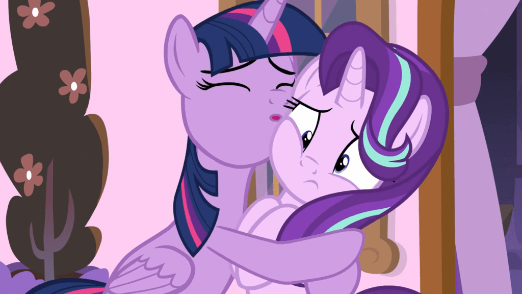 To start the episode, the map sends Starlight Glimmer alone on a mission to Celestia and Luna’s castle. Twilight Sparkle responds with some good old Twilighting, doubled by her motherly treatment of Starlight.