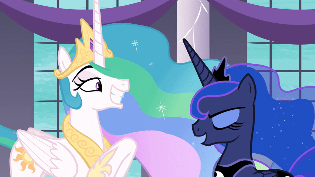 I’ve noticed that Lewis and Songco like writing episodes involving a conflict where both parties aren’t quite in the right. They wrote two such episodes about new characters (The Hooffields and the McColts, Top Bolt), and now they’re doing it with existing characters. I feel like when writing this episode, they thought about why Celestia and Luna might still be mad at each other, and they did such a good job with it. It makes perfect sense that after multiple years where Luna lived in Equestria, the sisters still have some unresolved bad blood.