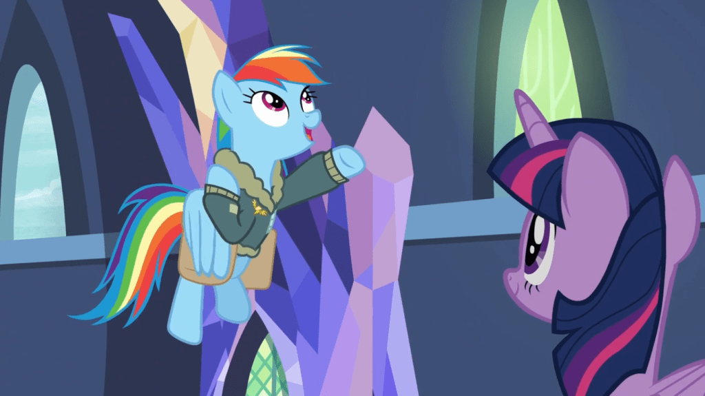 Premise: The Cutie Map sends Twilight Sparkle and Rainbow Dash—the Mane 6’s bookworms—to the Wonderbolts’ flight camp, where they encounter two childhood friends in training who have unknowingly been holding each other’s flight skills back by secretly giving boosts.